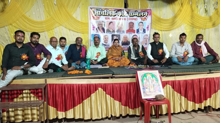 खैरागढ़ : खैरागढ़ विकासखंड के समीपस्थ ग्राम मारूटोलाकला में पहली बार आंचलिक कवि सम्मेलन का भव्य आयोजन किया गया। समस्त ग्रामवासियों के तत्वावधान में आयोजित इस कार्यक्रम की शुरुआत मां शारदे के तैलचित्र पर माल्यार्पण एवं पूजन से हुई। कवि धर्मेंद्र जंघेल ने सरस्वती वंदना प्रस्तुत कर वातावरण को भक्तिमय बनाया।