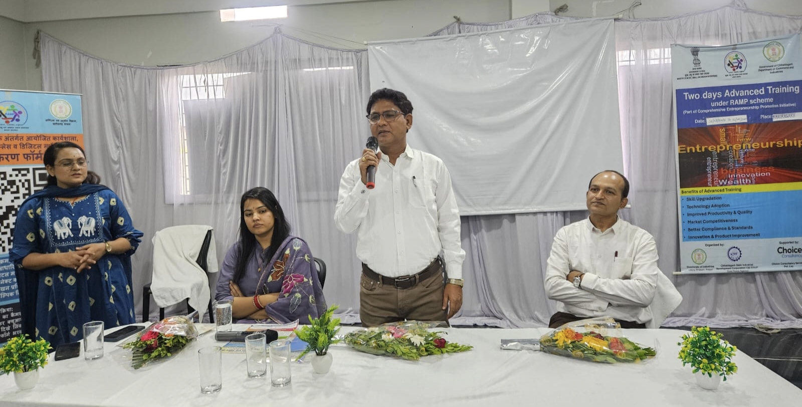 खैरागढ़ - केंद्र सरकार की रैंप (RAMP) योजना के अंतर्गत जिला पंचायत खैरागढ़ में उद्यमिता विषय पर दो दिवसीय एडवांस प्रशिक्षण कार्यक्रम का सफल आयोजन किया गया। यह कार्यक्रम सूक्ष्म, लघु एवं मध्यम उद्यम मंत्रालय तथा राज्य सरकार की उद्यमिता प्रोत्साहन पहलों के तहत सीएसआईडीसी रायपुर के बैनर तले चॉइस कंसल्टेंसी द्वारा आयोजित किया गया। कार्यक्रम में जिले के कुल 34 उद्यमियों एवं महिला उद्यमियों ने उत्साहपूर्वक सहभागिता की। प्रशिक्षण का मुख्य उद्देश्य स्थानीय संसाधनों पर आधारित उद्योगों को बढ़ावा देना, स्वरोजगार के अवसर सृजित करना तथा प्रतिभागियों को व्यावहारिक एवं तकनीकी ज्ञान प्रदान करना रहा। प्रशिक्षण के प्रथम दिवस में प्रतिभागियों से संवाद कर उनकी गतिविधियों और कार्यप्रणाली को समझा गया। इसके पश्चात मास्टर ट्रेनर पारुल पाण्डेय द्वारा केंद्र सरकार की योजनाओं, व्यवसाय विस्तार रणनीति, वित्तीय प्रबंधन, डिजिटल टूल्स, जीएसटी सहित कानूनी अनुपालन, गुणवत्ता नियंत्रण एवं मानकीकरण जैसे महत्वपूर्ण विषयों पर विस्तार से जानकारी दी गई।
